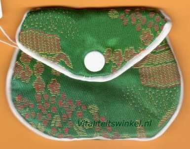 Brocaat tasje groen 9x7cm. Gevoerd met drukknop., ideaal om uw pendel in te bewaren.