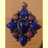 Lapis lazuli hanger met bloedkoraal in zilver ruitvorm 16 gram 5cm.